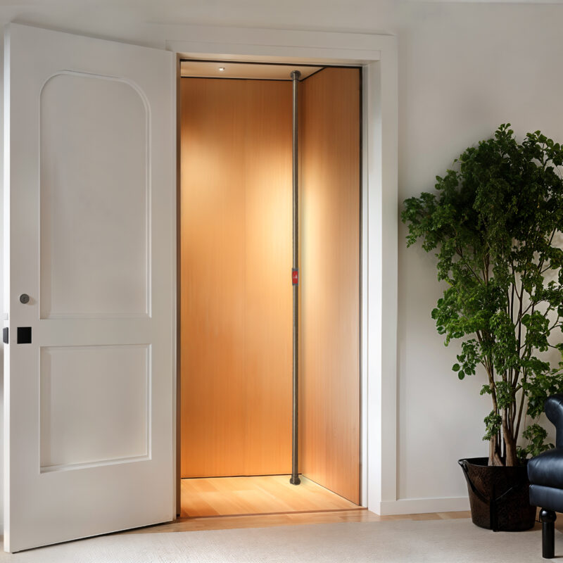 Ein weiterer Vorteil eines Hauslifts ist seine Flexibilität in der Gestaltung. Er kann hinter einer Tür oder einer Wand verborgen eingebaut werden, sodass auf den ersten Blick nicht zu erkennen ist, dass sich ein Lift im Raum befindet. So bleibt das Erscheinungsbild elegant und ungestört. Gleichzeitig lässt sich der Lift frei im Raum platzieren oder in jeder beliebigen Ecke integrieren, ganz nach individuellen Wünschen. Zudem kann er in jeder Holzart und Farbe gestaltet werden, sodass er sich perfekt an den persönlichen Einrichtungsstil anpasst.
